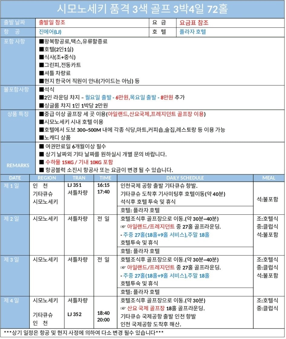 ✈️ 6월1일,8일,15일,22일,29일(일) : 999,000원 - 72홀