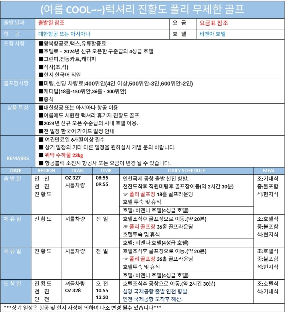 ⛳중국 진황도 품격 폴리 무제한 골프 <3박~장박>