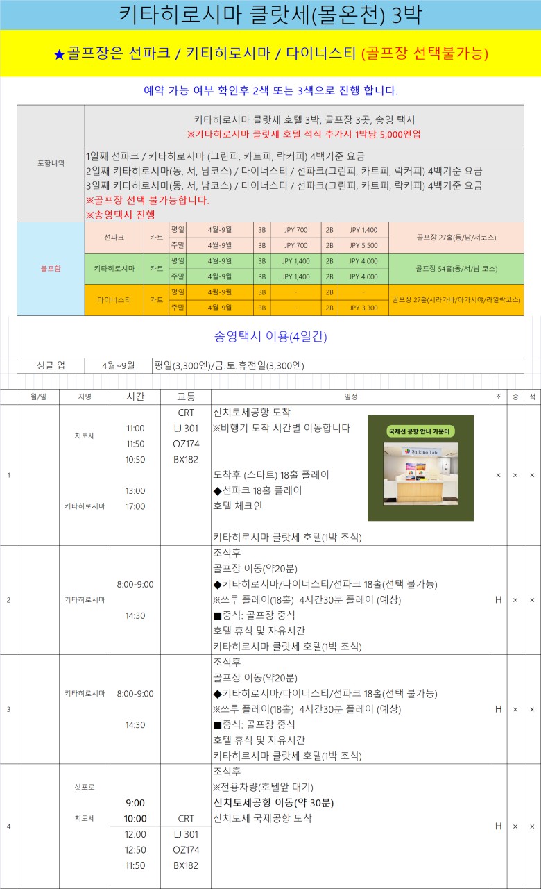 ◎ 삿포로 키타히로시마 G.C가 NG일 경우는 다른 골프장을 안내드립니다.(추가요금 발생)
