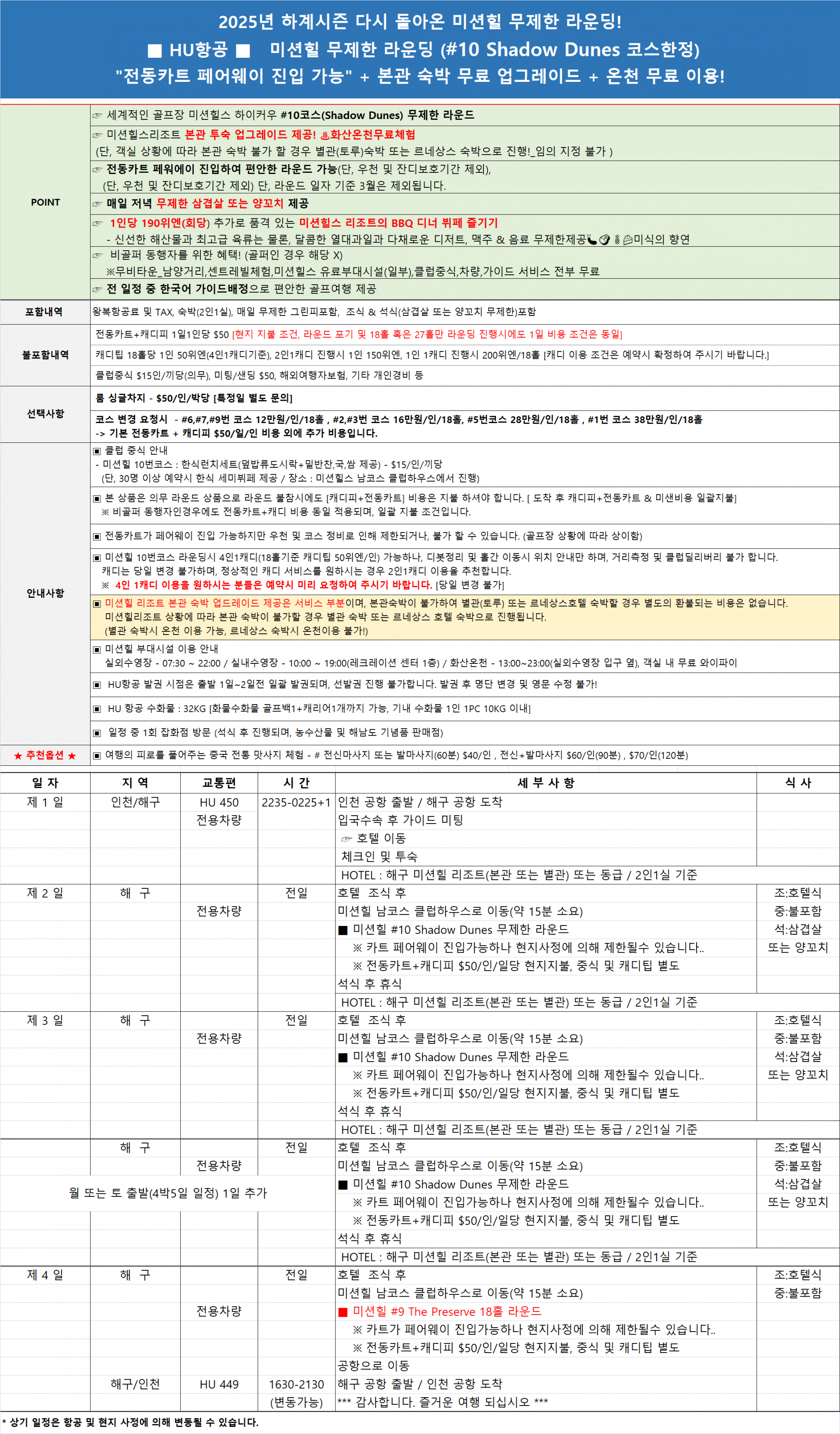 ํ #10 Shadow Dunes ์ธ ๋ค๋ฅธ ์ฝ์ค ์์ฒญ์ ์๋ ๋น์ฉ ํ์ธ ๋ฐ๋๋๋ค. [์ถ๋ฐ์ /ํ์ง ๋์ผ ์ ์ฉ]