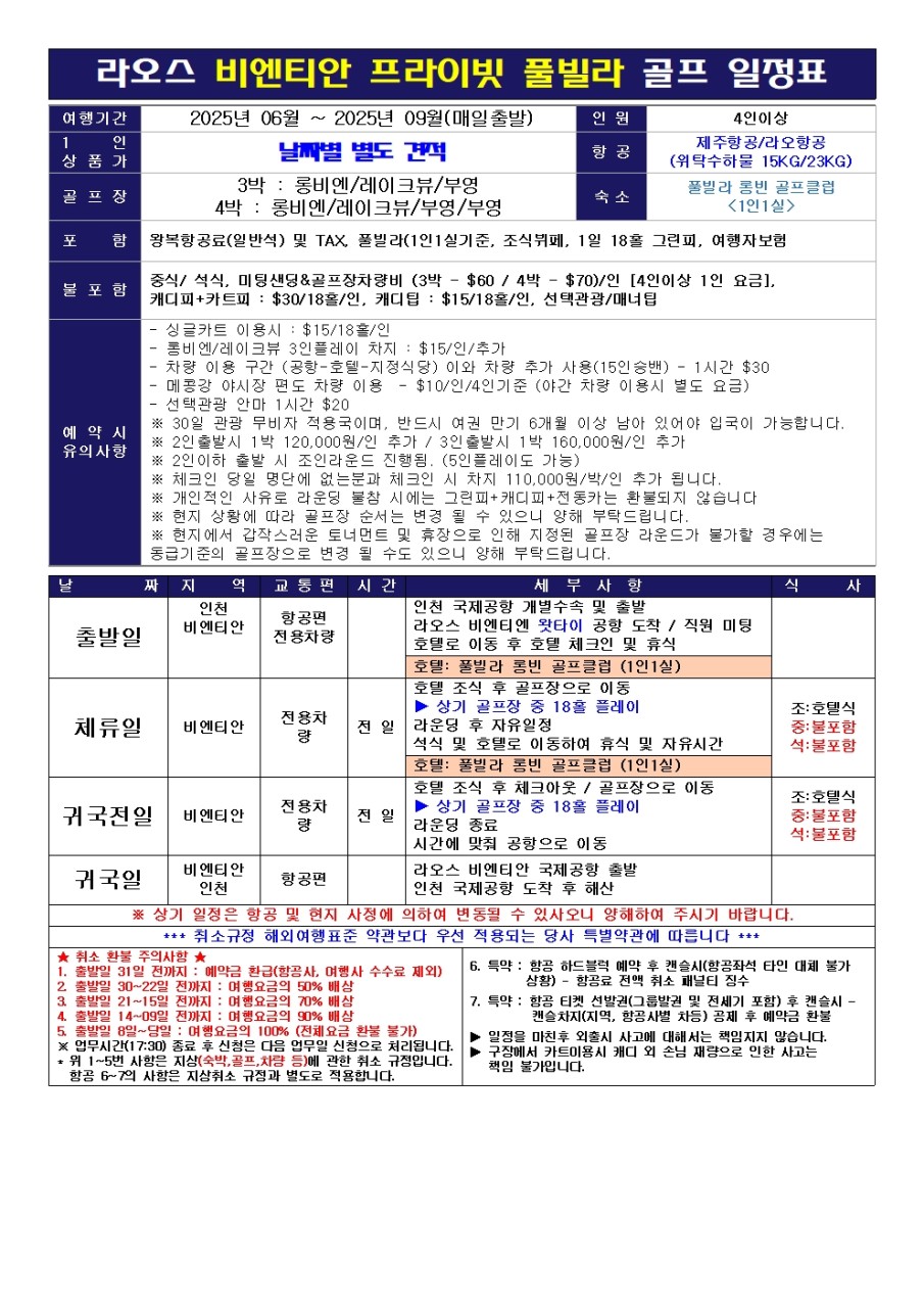 ์๋ฉ&๊ณจํ์ฅ์ฐจ๋๋น (3๋ฐ - $60 / 4๋ฐ - $70)/์ธ [4์ธ์ด์ 1์ธ ์๊ธ]