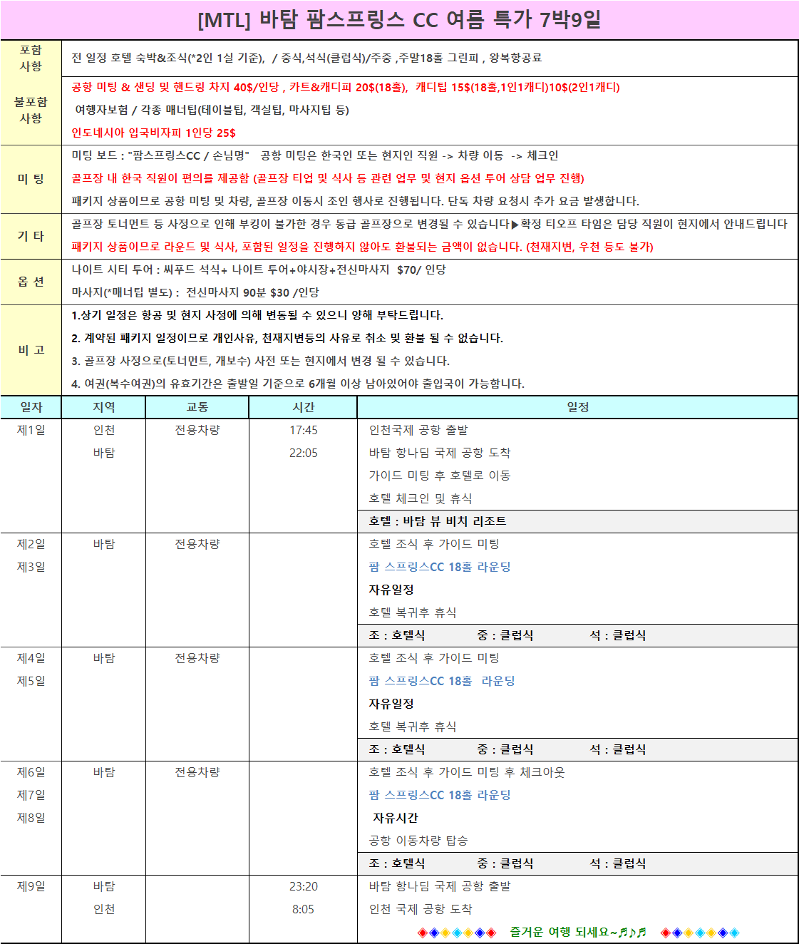 ⛳ <7박9일> 7월19일~27일 : 1,450,000원