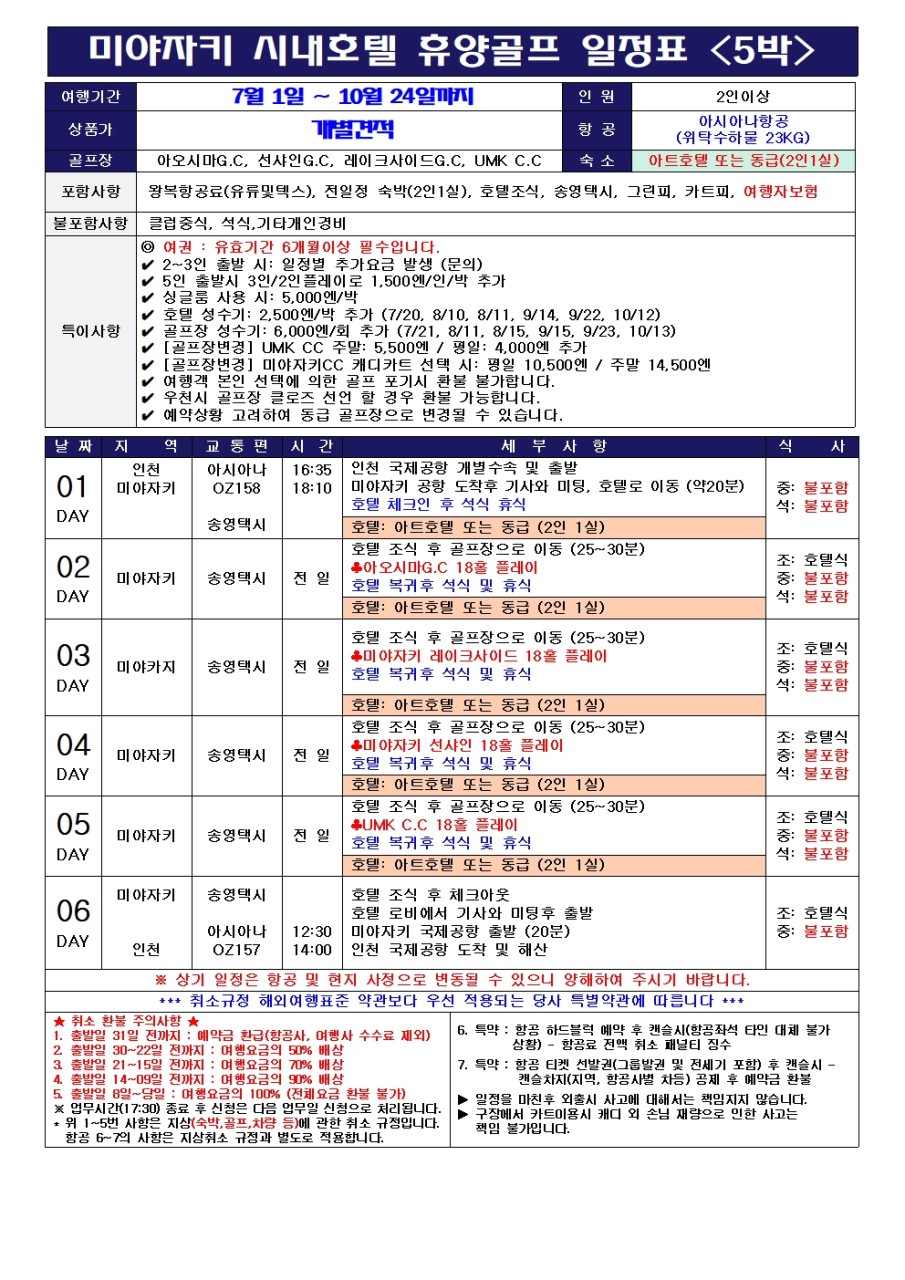 ✈️ 아시아나항공 (인천-미야자키) * 일요일 출발 5박6일