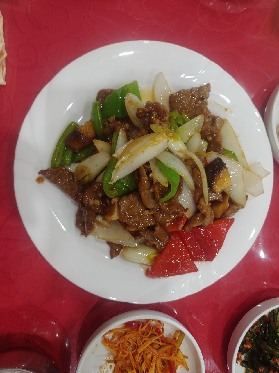 한식 요리: 해물파전 65위안 두부김치 65위안 그외 다양한 전골류 등