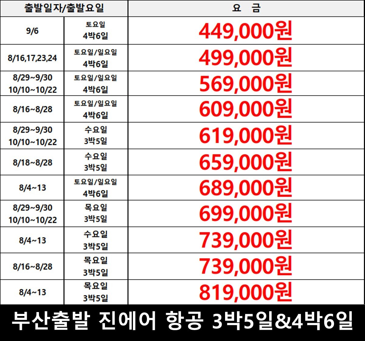 부산: 진에어 (3박5일/4박6일)