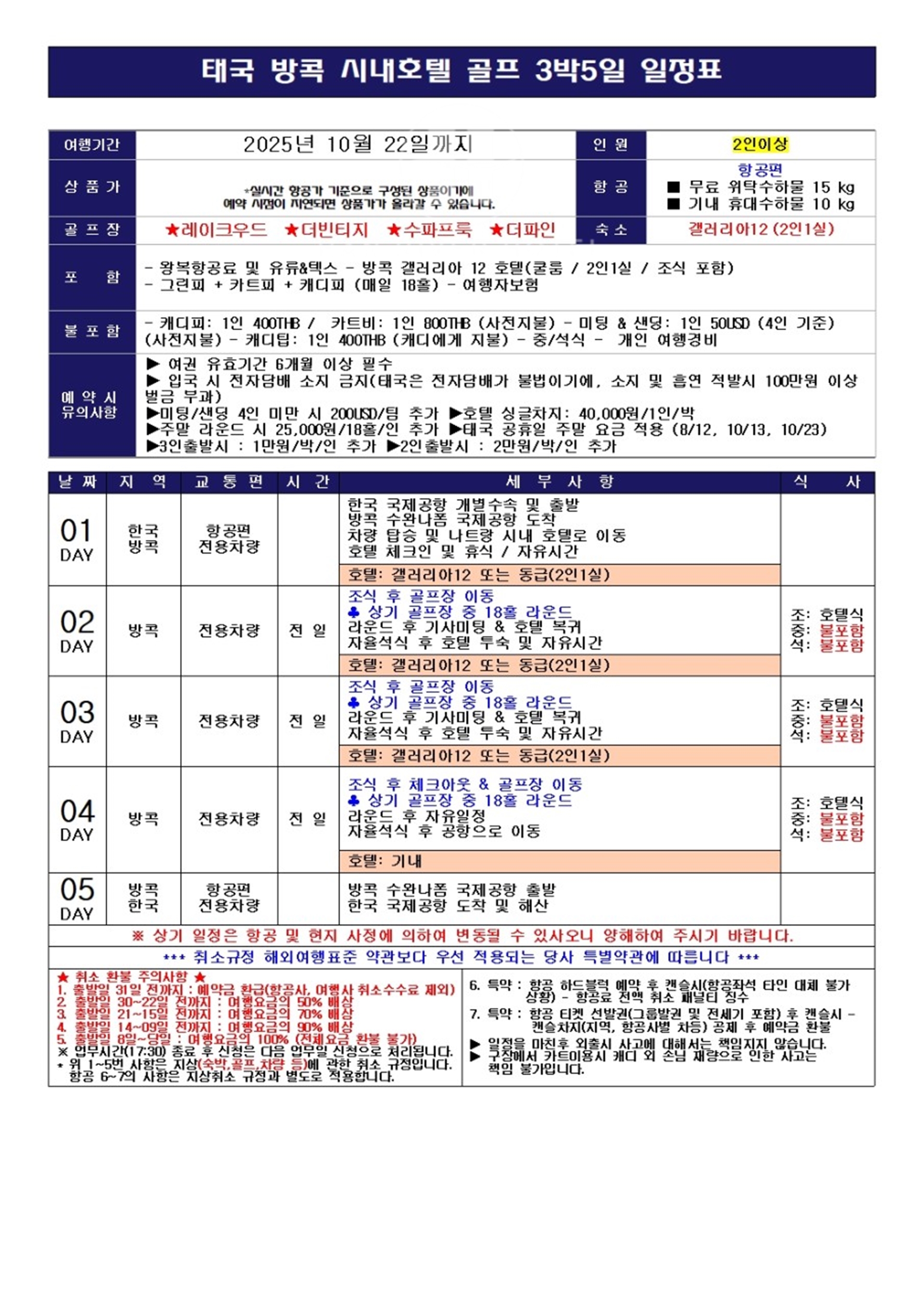 - 캐디팁: 1인 400THB (캐디에게 지불)