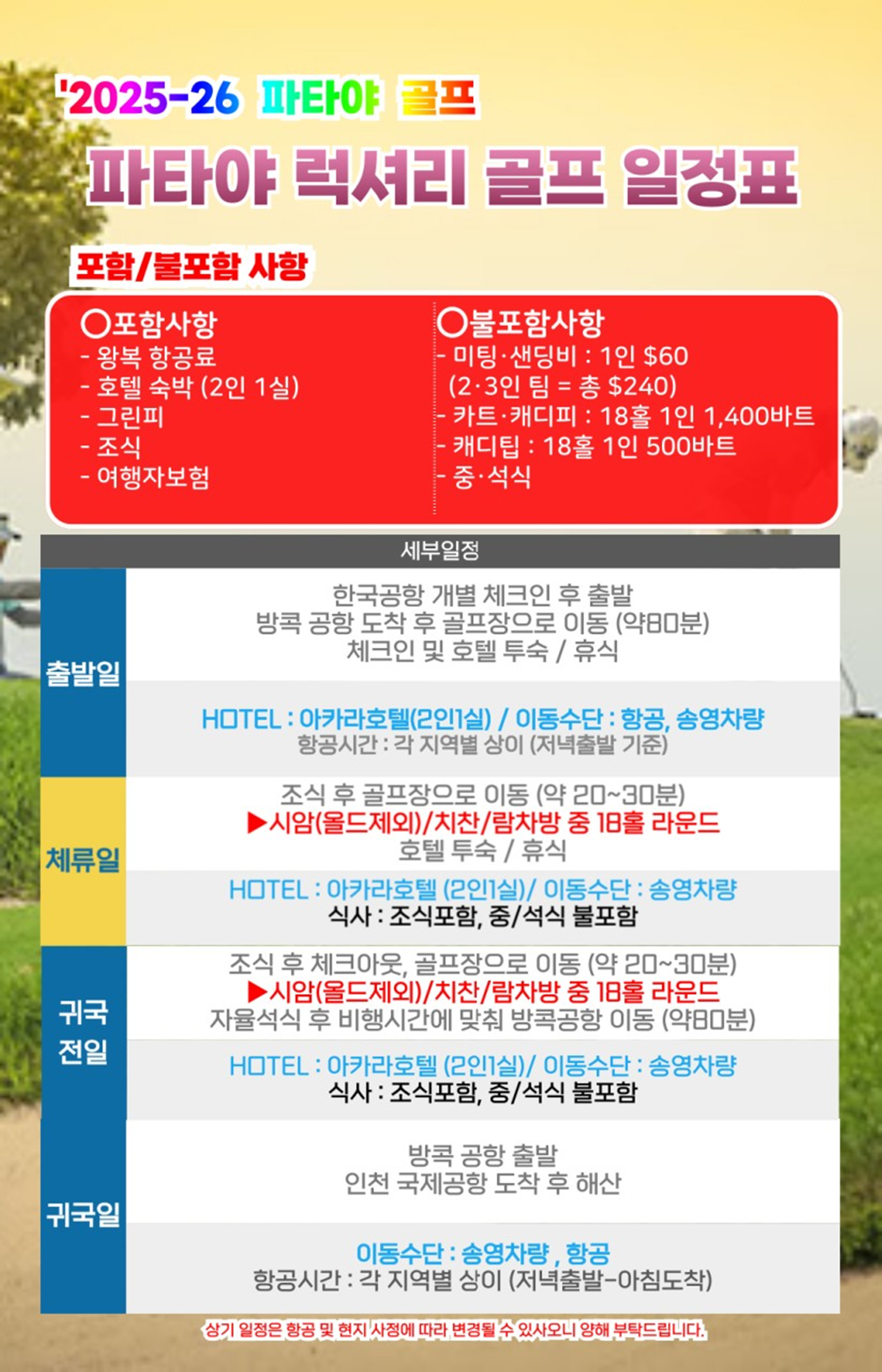 - 카트·캐디피 : 18홀 1인 1,400바트