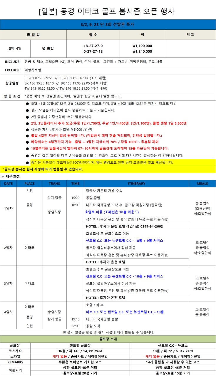 ⛳️2026 [초특가]일본 동경 이타코 3색골프<3박4일>