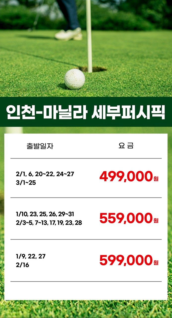 👉2/1, 6, 20~22, 24~27, 3/1~25 출발