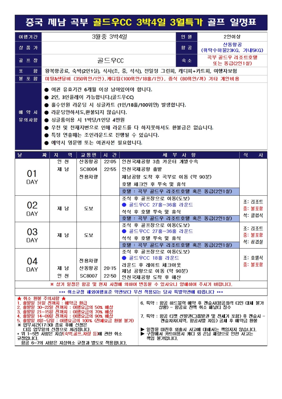 ✔️중국 제남 곡부 골드우 CC [3월특가]