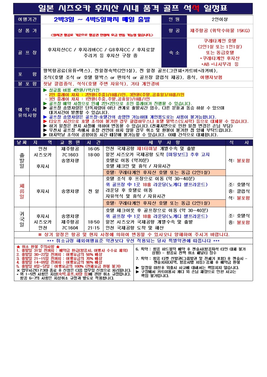 - 첫날플레이시 골프장 중식 불포함