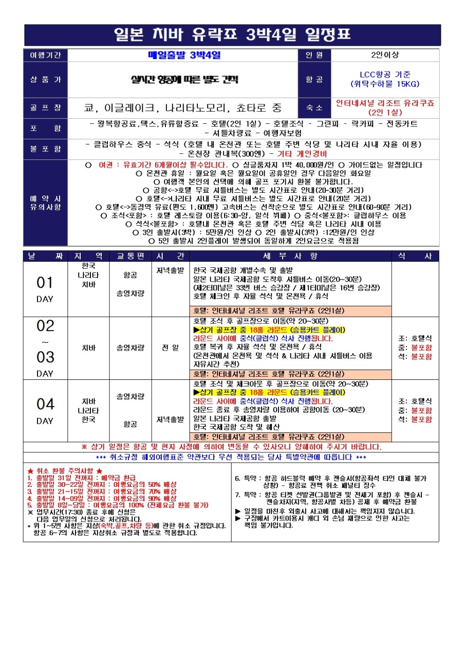 - 여행객 본인의 선택에 의해 골프 포기시 환불 불가합니다.