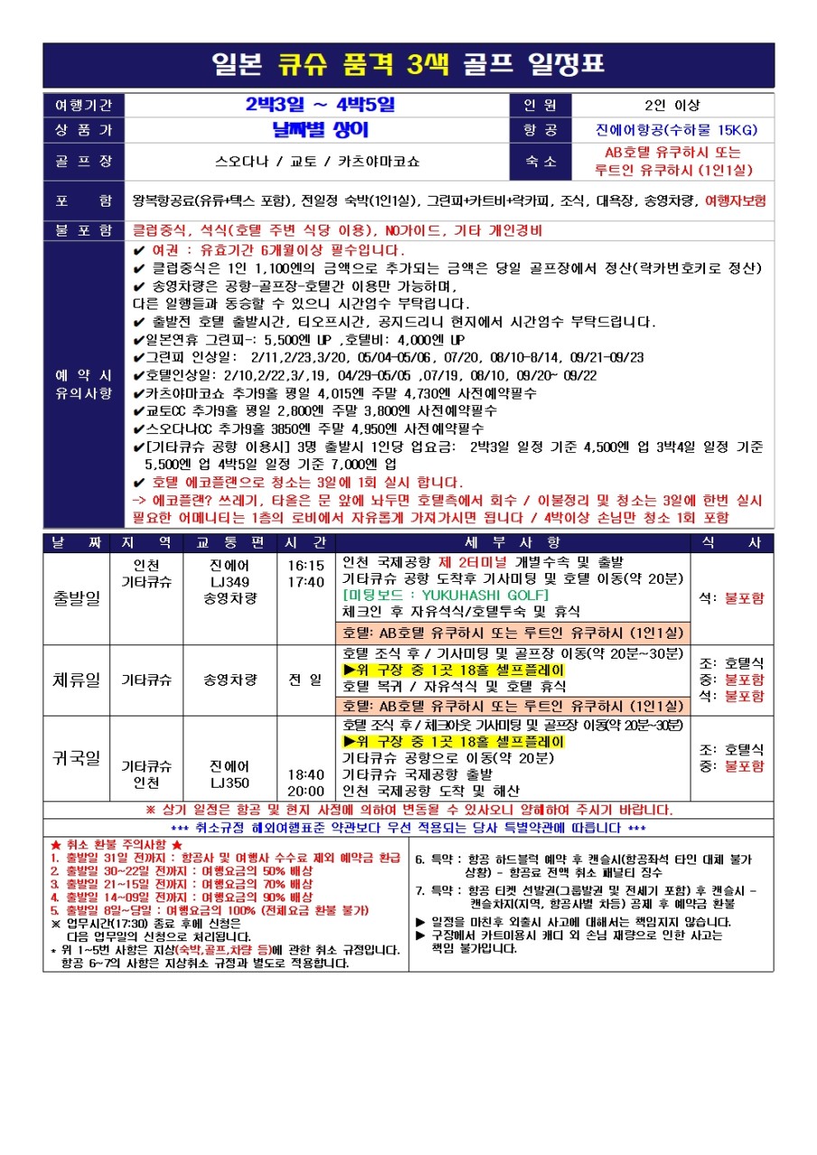 ⭕️2박3일 골프3회 (평일기준) : 119만원~