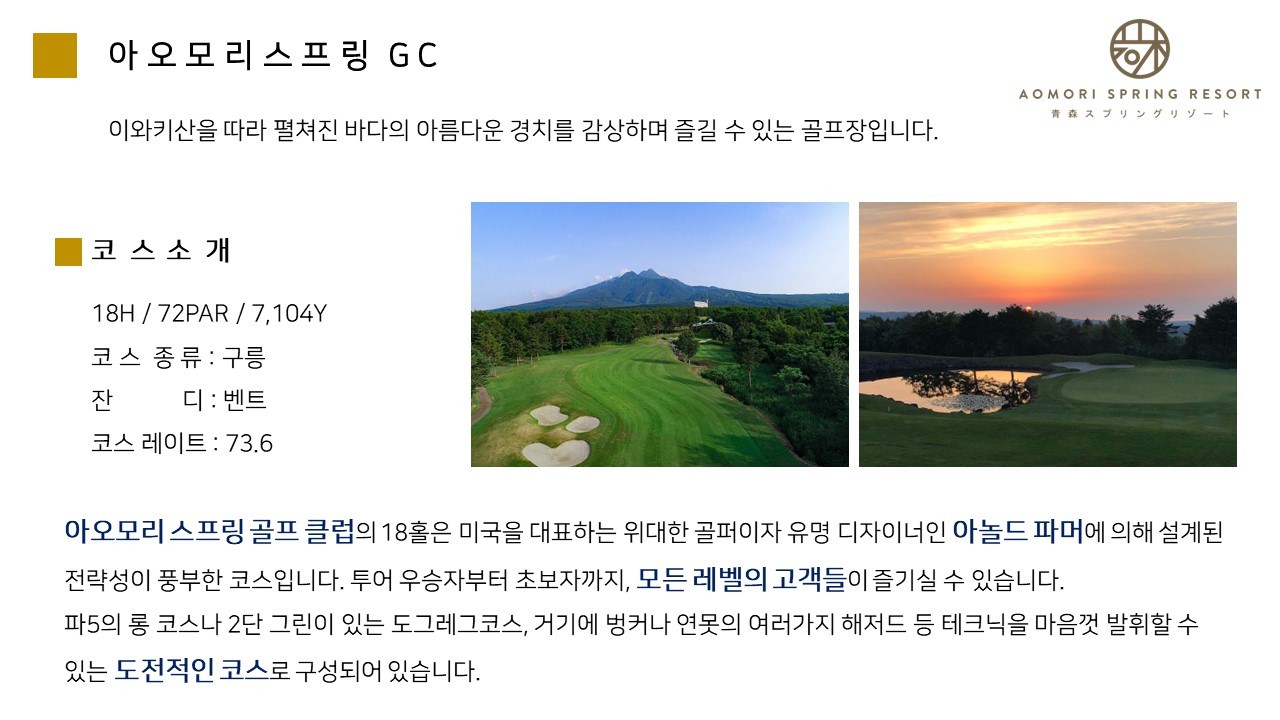 ⛳ 골프: 아오모리 스프링 GC (출발일 9홀/ 체류일27홀)