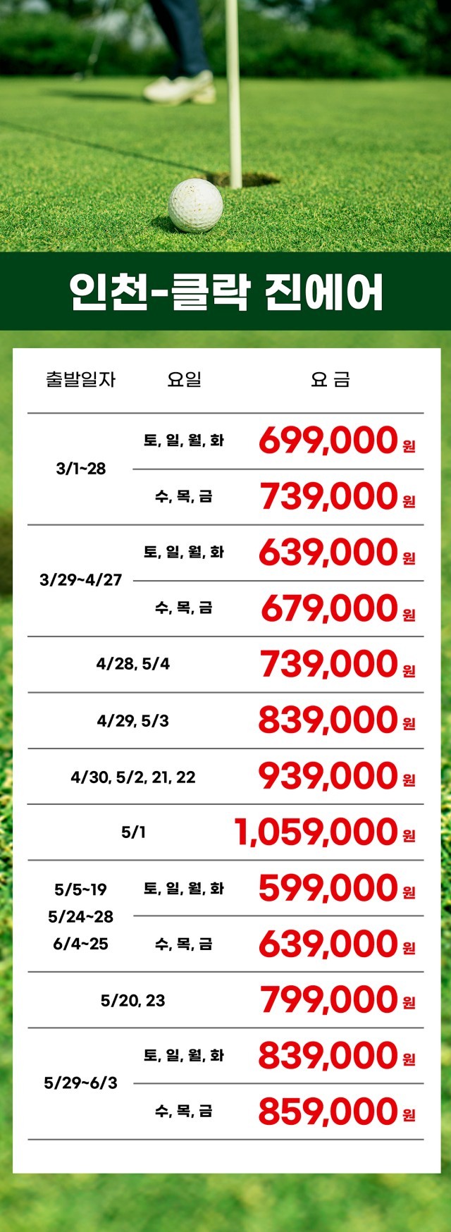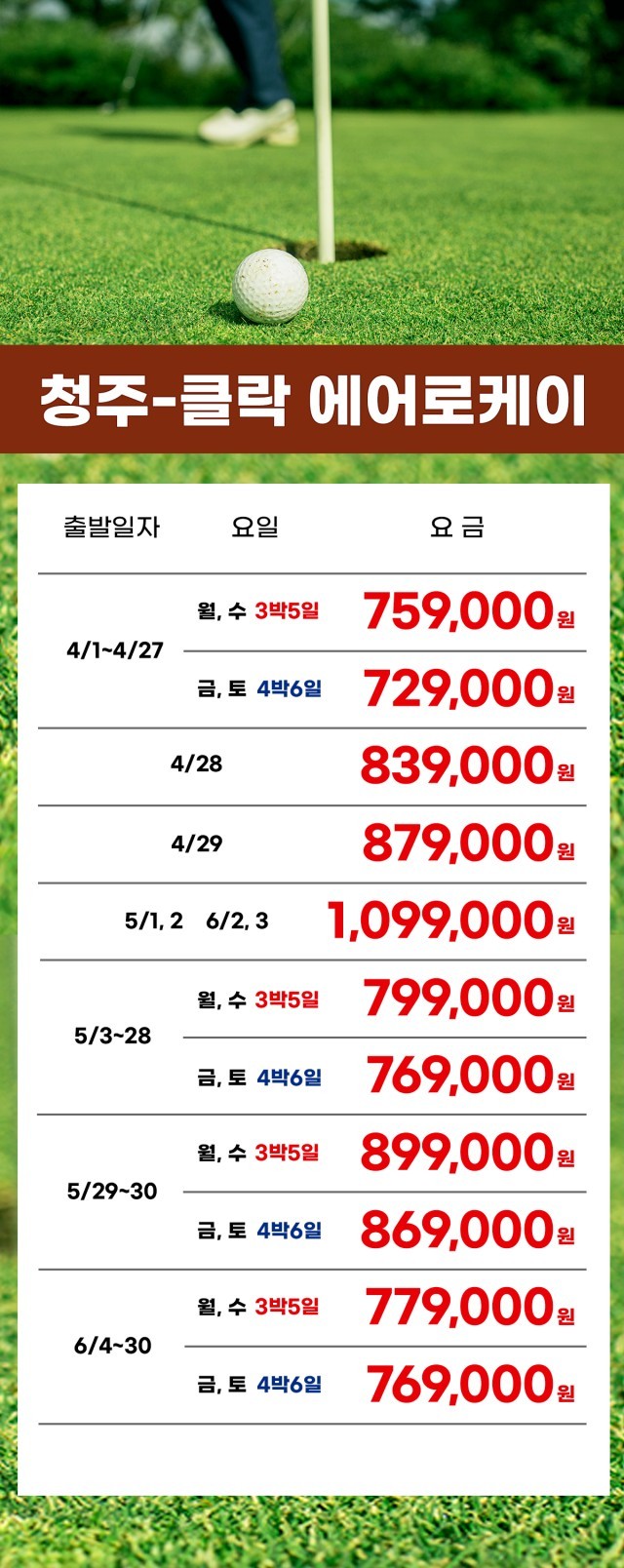 ⛳ 인천·부산·청주 출발