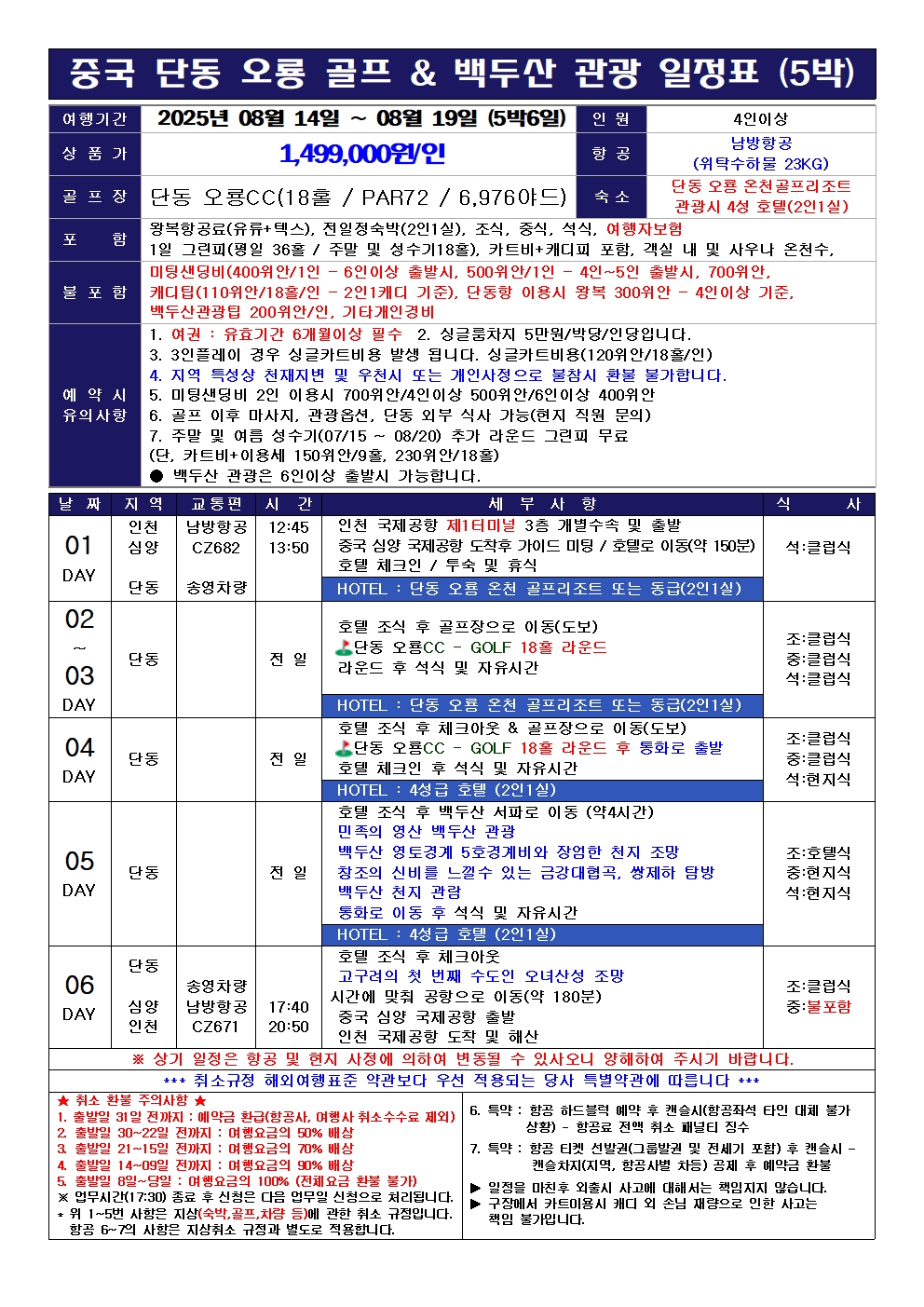 - 4인 이상 신청 가능하고, 백두산 관광은 6인이상 모객시 출발 가능