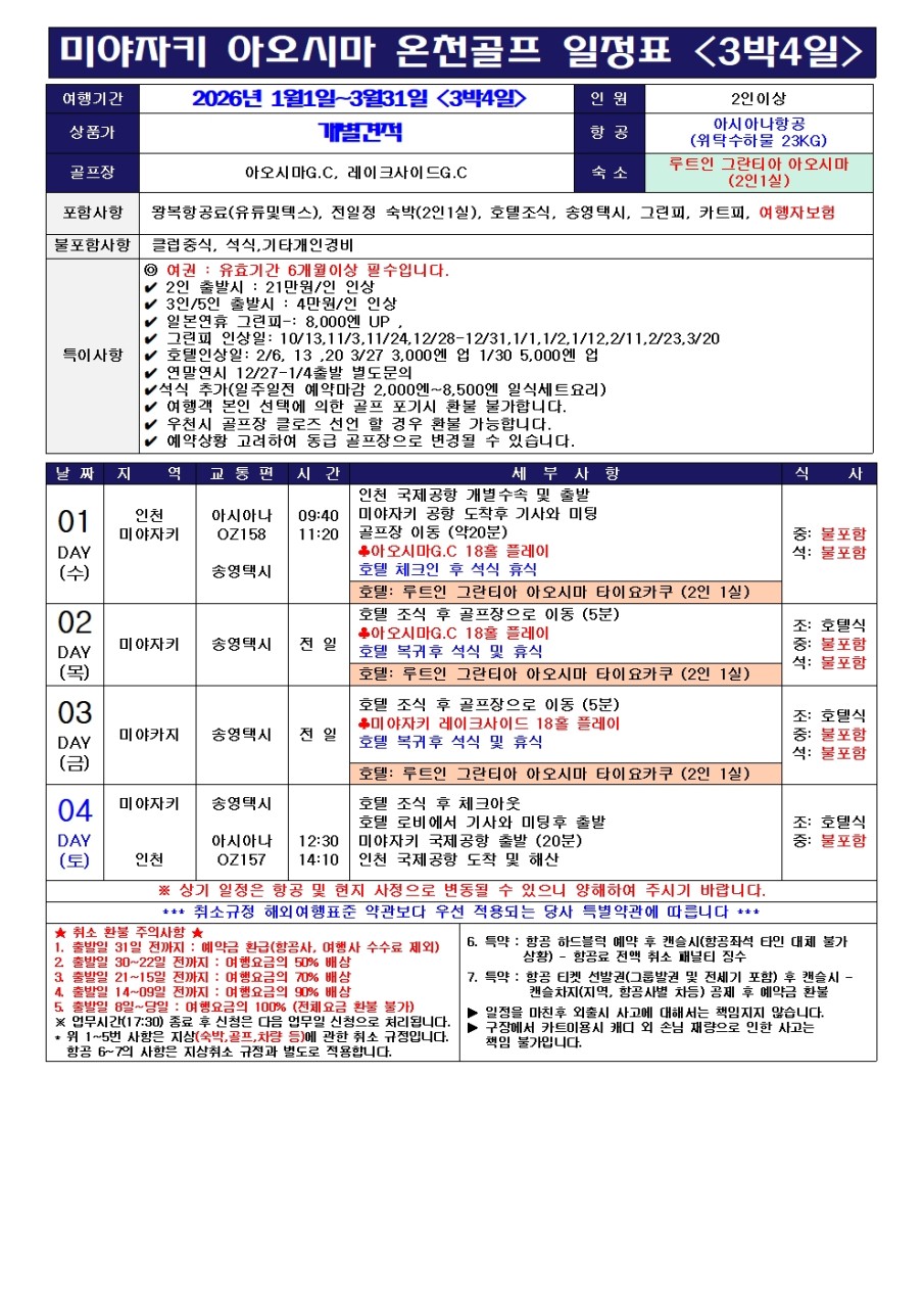 ⛳[매주 수요일 출발] - 3박4일