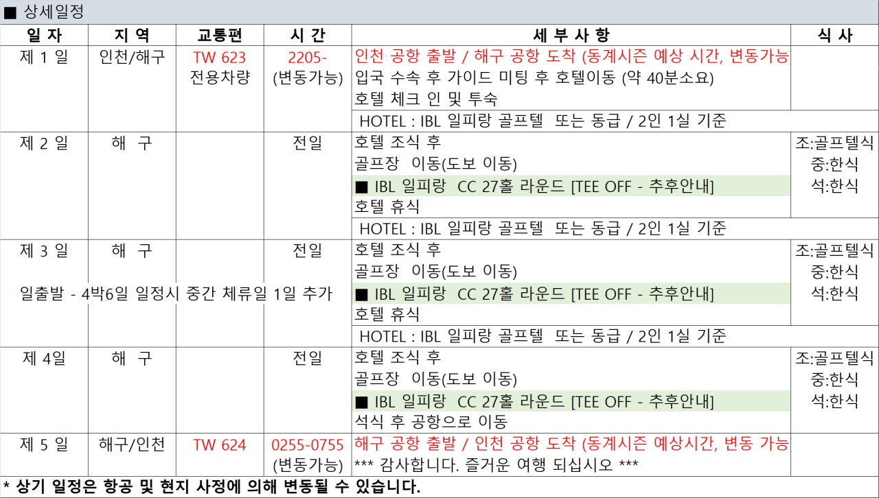 🌴 왕복 항공 + 숙박 + 전 일정 식사 + 그린피 포함