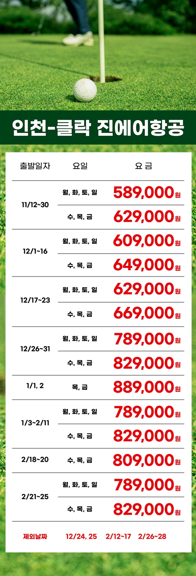 ๐ซ ์ ์ธ์ผ: 12/24~25, 2/12~17, 2/26~28