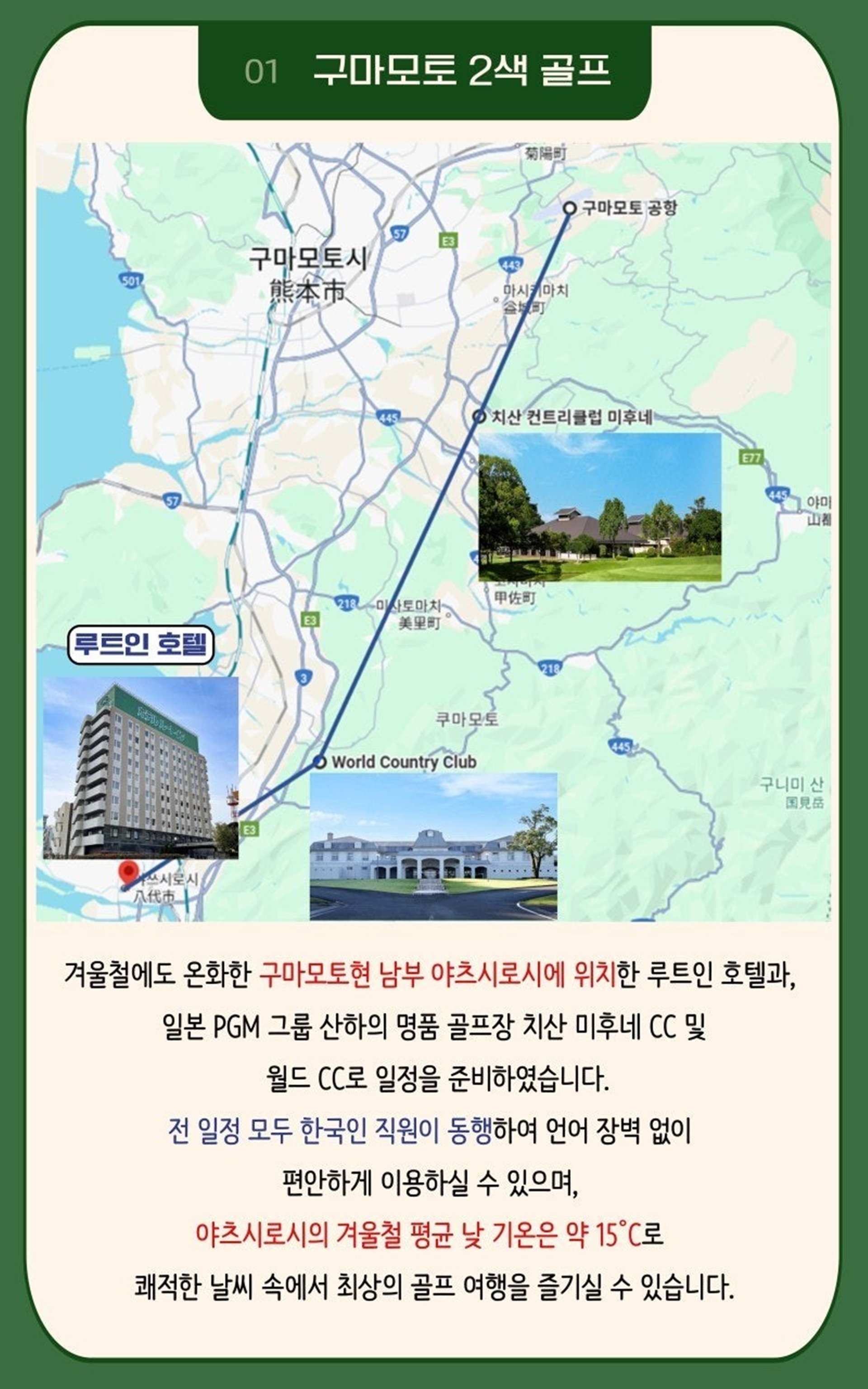 ⛳구마모토 야츠시로 시내 & 온천 2색 골프